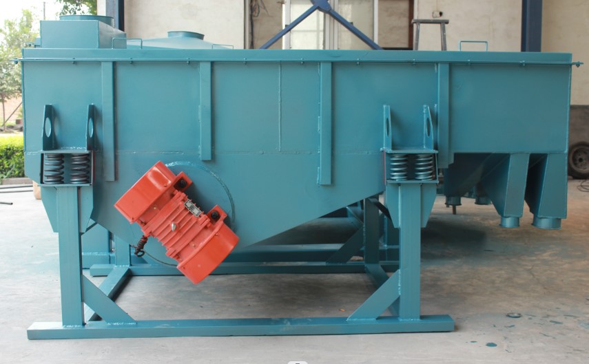 直線振動篩是振動篩的一種,主要是利用振動電機激振作為振動源,使物料在篩網(wǎng)上被拋起,同時向前作直線運動,物料從給料機均勻地進(jìn)入篩分機的進(jìn)料口,兩電機同步反向旋轉(zhuǎn)使激振器產(chǎn)生反向激振力,迫使篩體帶動直線振動篩篩網(wǎng)做縱向運動,使其上的物料受激振力而周期性向前拋出一個射程,從而完成物料篩分作業(yè)。